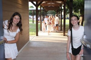 If you were to ask someone from Green Family Camp Session One if they knew Carmen Bernstein and Margo McAlister, not only would they scream “of course!” but they might mention how those are the girls that are always holding open the PAC (Performing Arts Center) doors for song session or shira. What they might not know is how fast we stack our chairs and sprint out of the Chadar Ochel (dining hall) to hold open said doors as soon as the youngest unit, Bonim, is dismissed to the PAC.